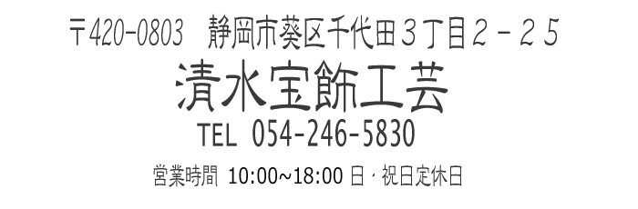最近スーパーコピー品だと謳いブランド時計やバッグをネットで大々的に売ってる 海外の清水宝飾という会社は、当社とは一切関係ありません。 当社では、お客様との信用第一の宝石・貴金属の販売、製造加工、修理の専門店 でございます。その上ご理解いただき、下記リンクにアクセスください。